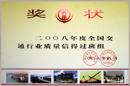 > 2008年度全國(guó)交通行業(yè)質(zhì)量信得過(guò)班組獎(jiǎng)狀