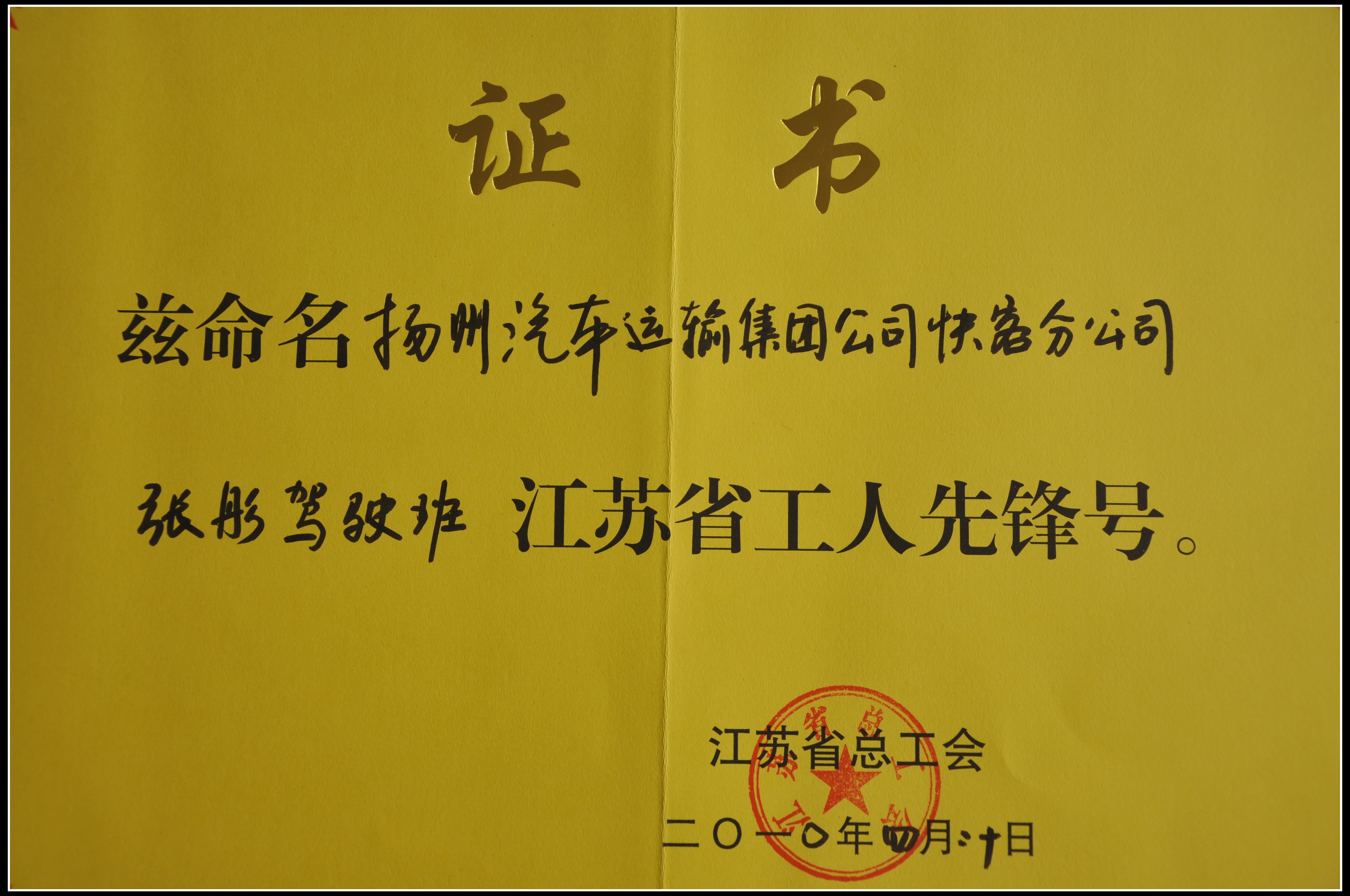 > 集團公司快客分公司張彤駕駛班被江蘇省總工會評為工人先鋒號
