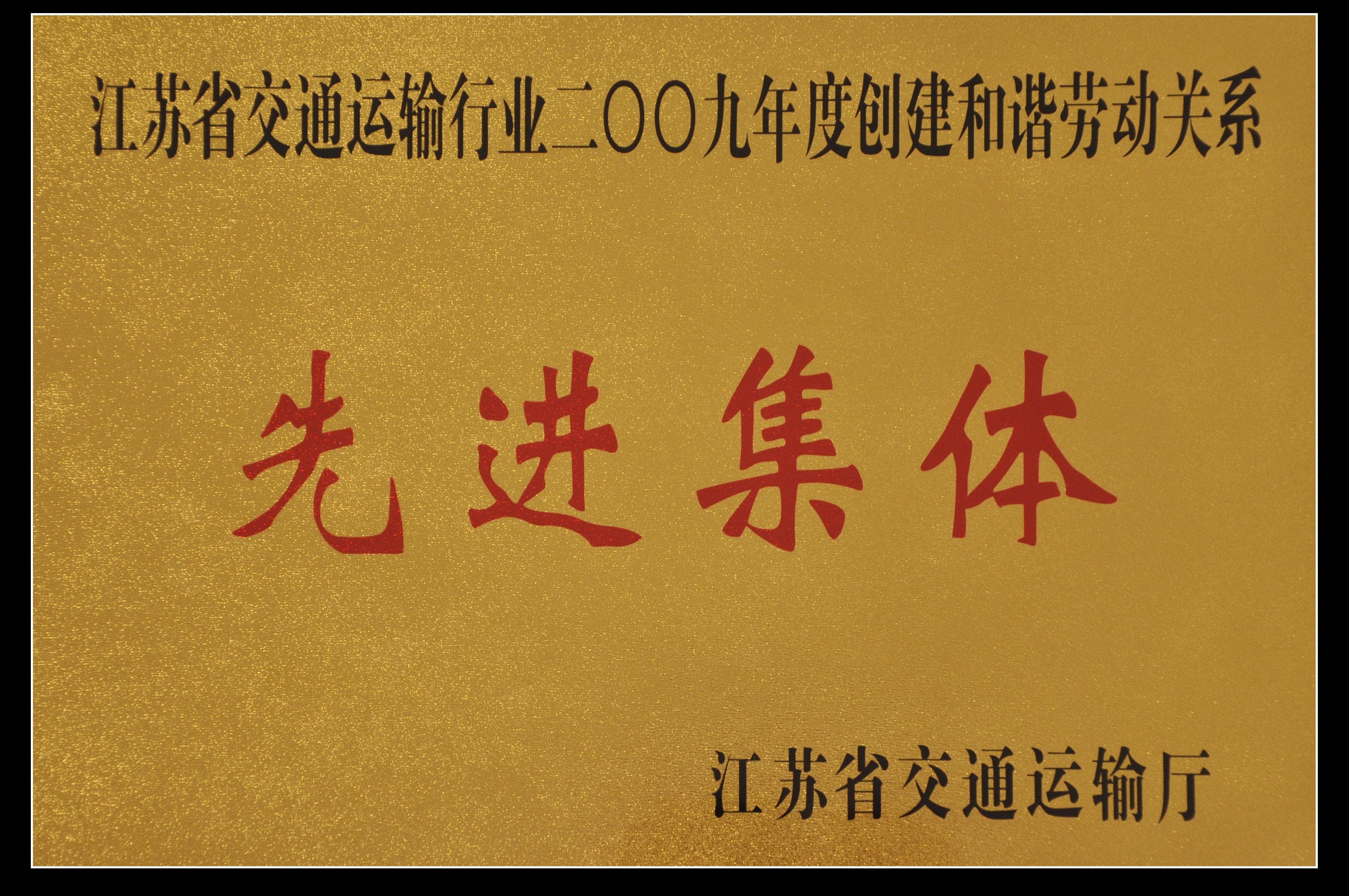 江蘇省交通運輸行業(yè)2009年度創(chuàng)建和諧勞動關系先進集體