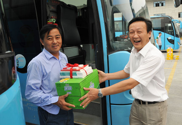 送清涼活動(dòng)中,朱明副主席將防暑降溫用品和書籍送給一線駕駛員的同時(shí),仔細(xì)詢問(wèn)他們的工作、生活情況,對(duì)他們?cè)诟邷叵聢?jiān)守崗位表現(xiàn)出的良好精神風(fēng)貌表示敬意。他表示,全市工會(huì)組織將繼續(xù)發(fā)揮黨委、政府與職工之間聯(lián)系的橋梁紐帶作用,幫助大家解決實(shí)際困難,做好職工的堅(jiān)強(qiáng)后盾。