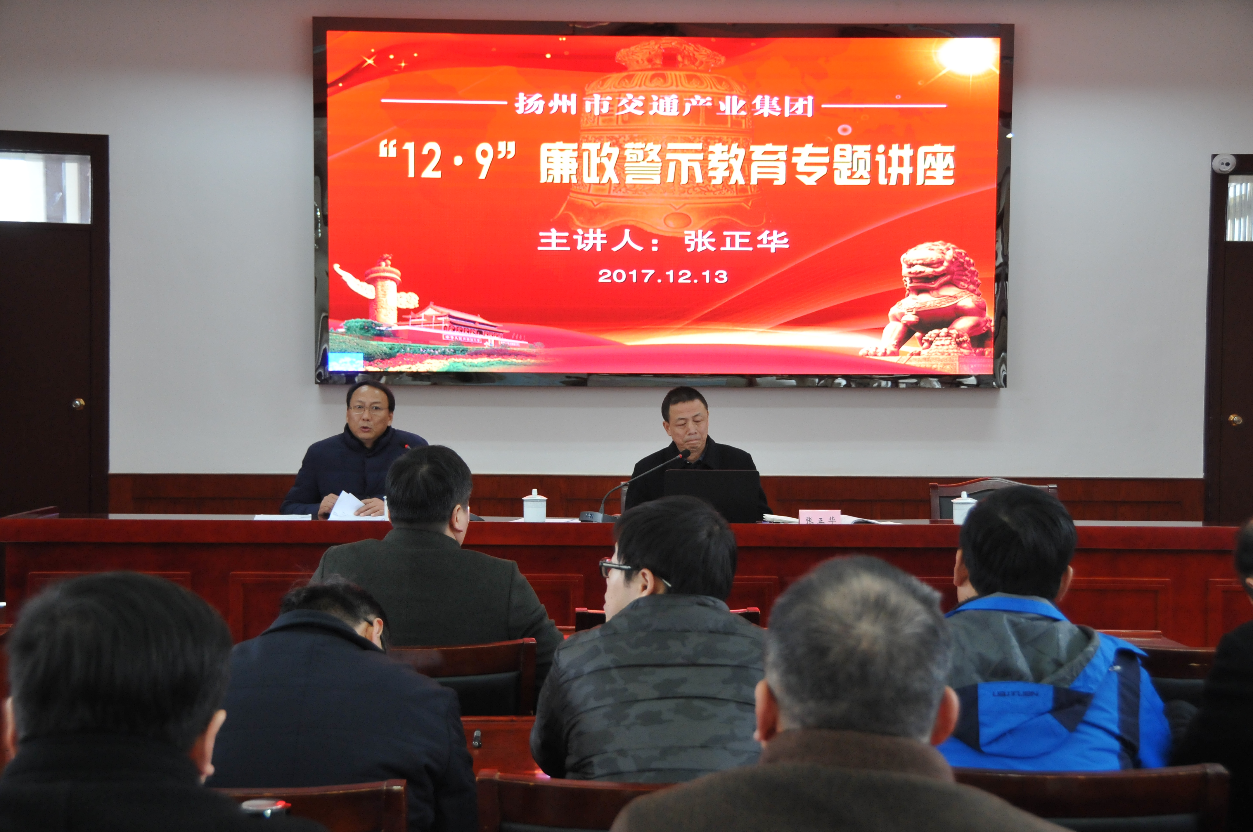 12月13日下午,市交通產(chǎn)業(yè)集團(tuán)在市級機(jī)關(guān)工委黨校舉辦“12.9”廉政警示教育專題講座;顒佑山煌óa(chǎn)業(yè)集團(tuán)黨委副書記王寧生主持,邀請市紀(jì)委第十派駐紀(jì)檢組組長張正華主講,系統(tǒng)內(nèi)黨員干部近百人現(xiàn)場聆聽講座。揚(yáng)汽集團(tuán)總經(jīng)理、黨委書記曹遠(yuǎn)志等班子成員及各部門、單位黨政負(fù)責(zé)人30余人參加活動。