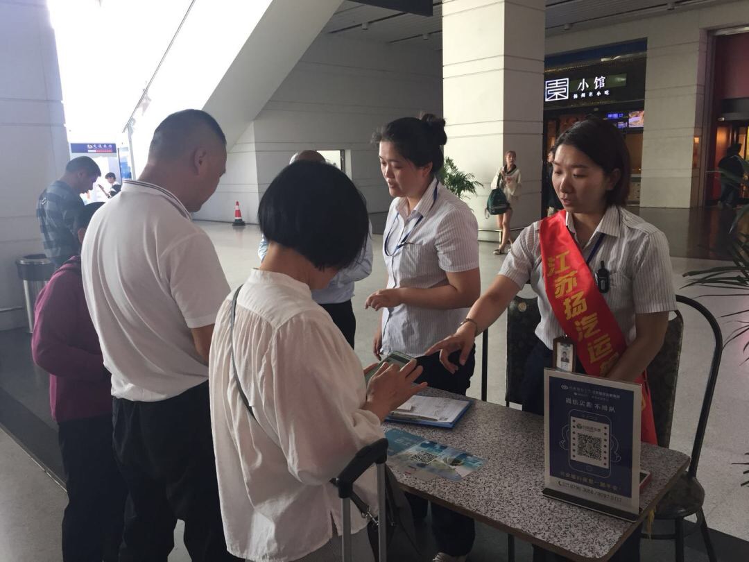 站外,揚州站營銷小組在火車站下客區(qū)拉起橫幅,身披綬帶開展營銷活動,推廣旅游包車業(yè)務(wù)和行包快運業(yè)務(wù),免費為過往旅客提供咨詢、兌換零錢、引導(dǎo)候乘等服務(wù)。讓外地來揚的旅客對揚汽集團有了直觀的了解,感受到了我們熱情周到的服務(wù)。