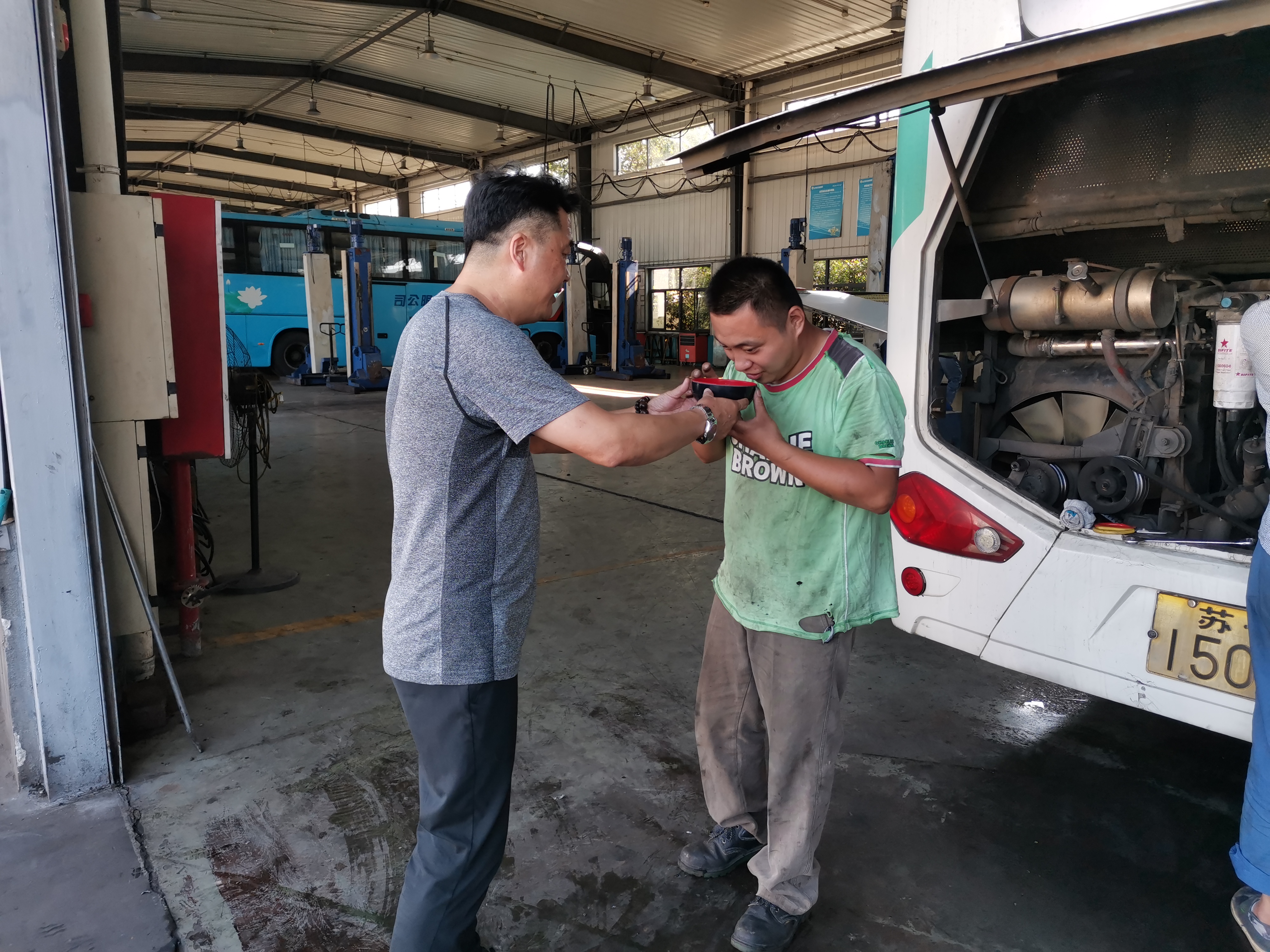修理廠:針對高溫天氣,修理廠多種防暑措施并進,以發(fā)放藿香正氣水、龍虎人丹、毛巾、肥皂等防暑降溫用品以及全天不限時供應礦泉水,堅持每日發(fā)放冰鎮(zhèn)綠豆湯等方式,避免職工中暑現(xiàn)象發(fā)生,同時還要求班組時刻關注組員身體狀況,著重關注“三高”人群每日服藥情況,保持休息室空調長效制冷,確保職工及時有效防暑避暑,營造高溫下安全生產氛圍。
