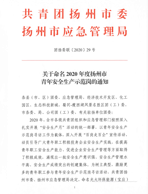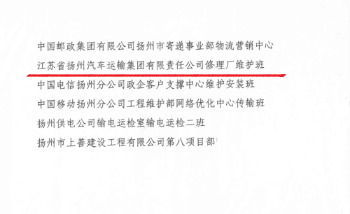 2020年,揚(yáng)汽集團(tuán)修理廠維護(hù)班切實(shí)落實(shí)“安全第一、服務(wù)第一、質(zhì)量第一”總目標(biāo),以突出的成績,被共青團(tuán)揚(yáng)州市委與揚(yáng)州市應(yīng)急管理局授予“揚(yáng)州市青年安全生產(chǎn)示范崗”稱號(hào)。