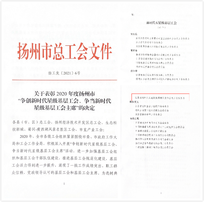 揚(yáng)汽集團(tuán)工會(huì)榮獲揚(yáng)州市“新時(shí)代五星級(jí)基層工會(huì)”稱號(hào)