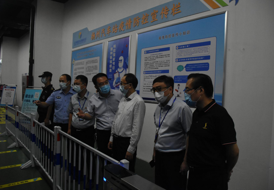 為全面落實(shí)市委、市政府疫情防控決策部署要求,9月17日下午,市紀(jì)委副書記徐宏宇來到揚(yáng)汽集團(tuán)西部客運(yùn)樞紐,檢查督導(dǎo)疫情防控專項(xiàng)工作。交通產(chǎn)業(yè)集團(tuán)副總經(jīng)理、揚(yáng)汽集團(tuán)黨委書記、董事長龔宇峰,交通產(chǎn)業(yè)集團(tuán)紀(jì)委書記、監(jiān)察專員方震及相關(guān)部門負(fù)責(zé)人陪同檢查。