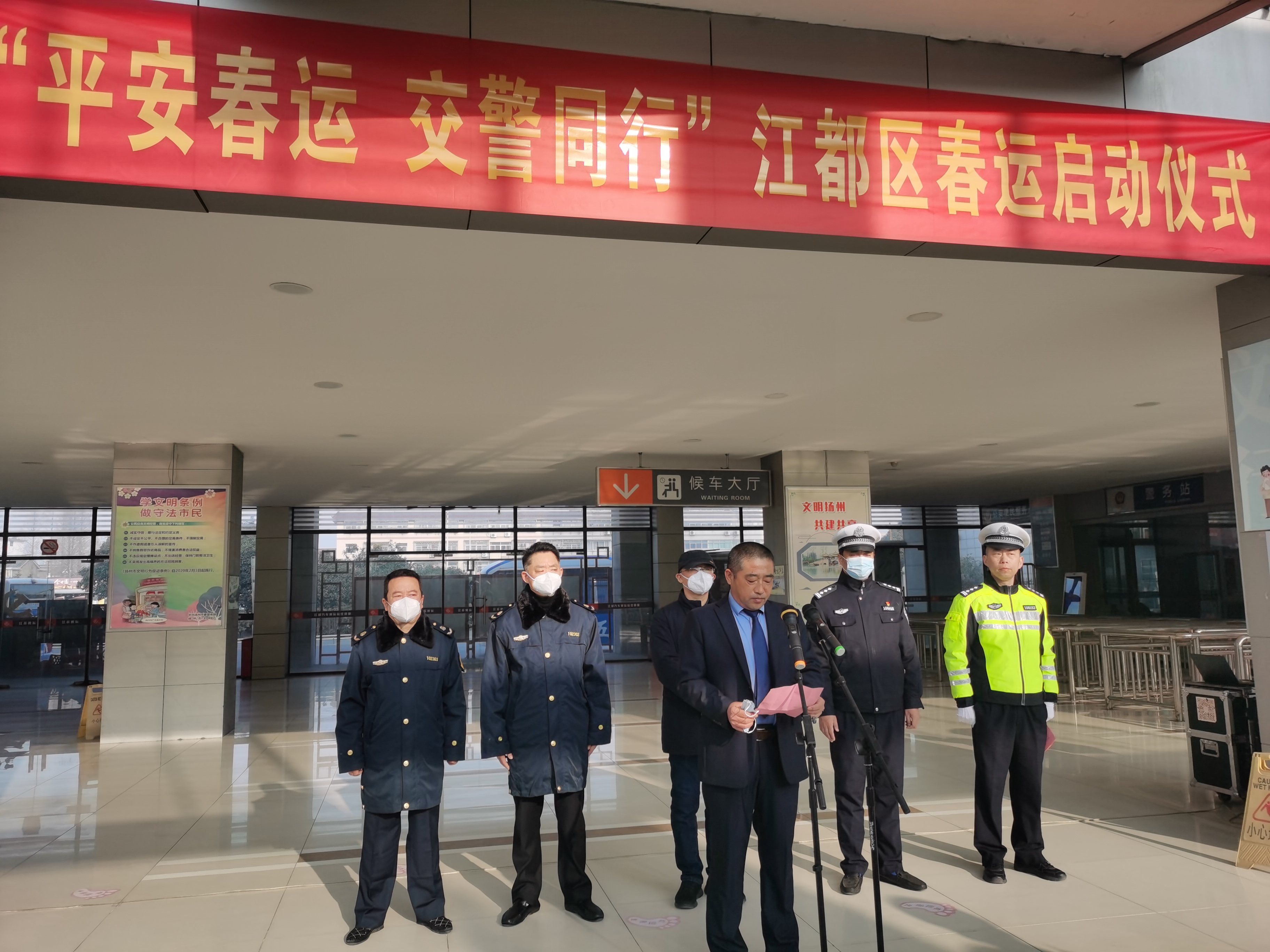 1月7日,2023年“平安春運 交警同行”啟動儀式在江都汽車客運站售票大廳內舉行。江都區(qū)公安局副局長、交警大隊大隊長宦新宇,江都區(qū)交警大隊車管所所長滕斌,揚汽集團相關負責人參加活動。