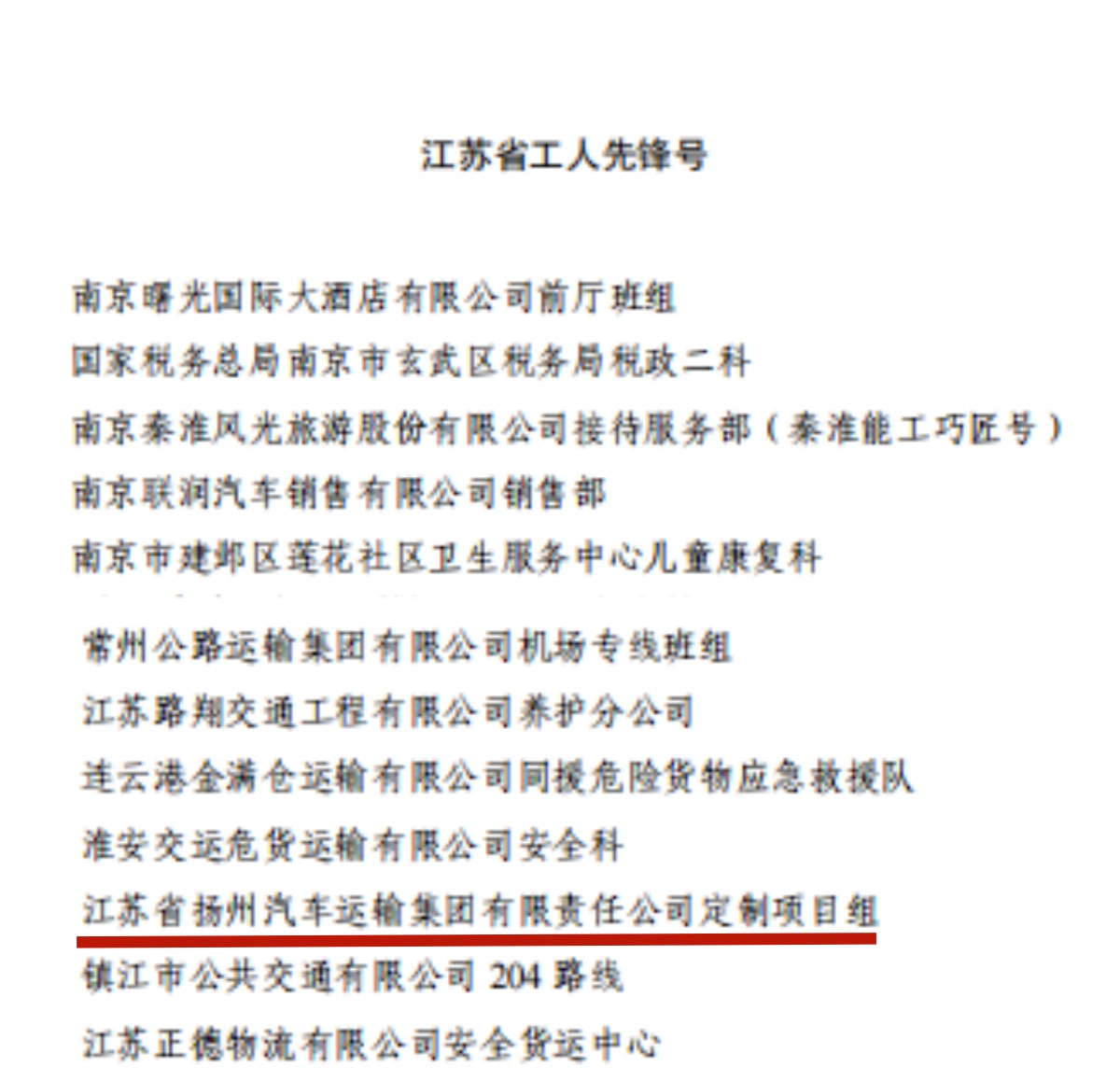 揚(yáng)汽集團(tuán)定制專線項目組榮獲江蘇省“工人先鋒號”稱號